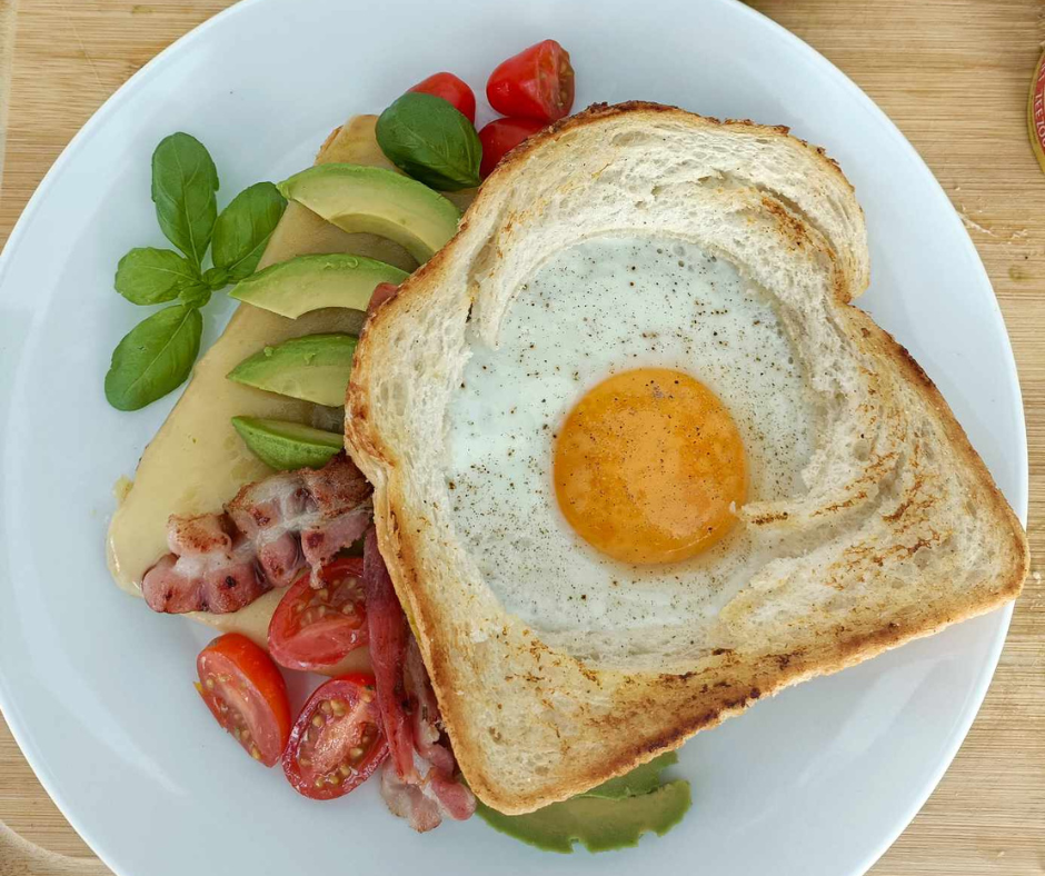 Voeg het eitje toe in de cirkel van het andere sneetje brood en laat nog enkele minuten bakken.