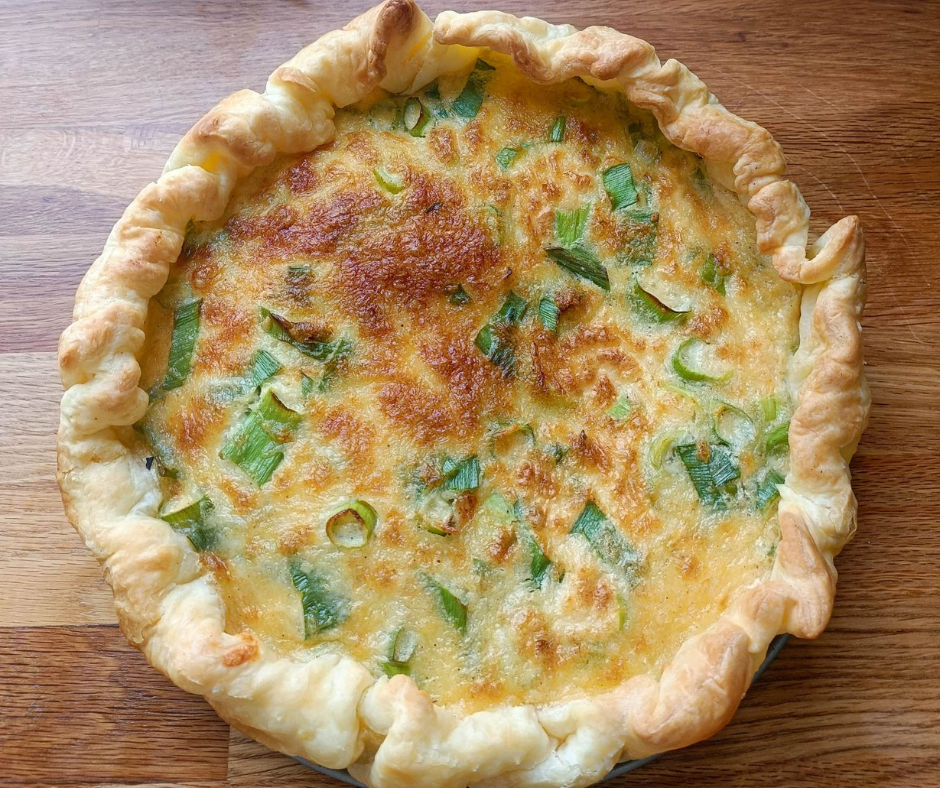 Bak de quiche +/- 30 minuten, of tot de vulling stevig is en de bovenkant goudbruin is.