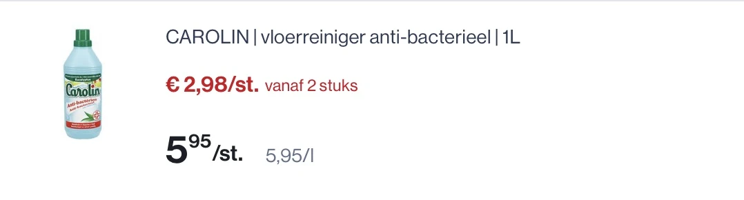 Vanaf 2 st 2,98€/st ipv 5,95€/st